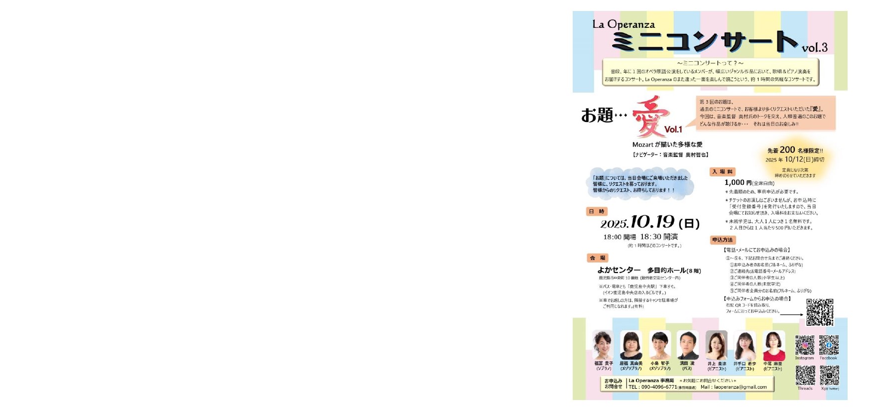 2025年10月19日@よかセンターにて、ミニコンサートVol.3の開催が決定しました‼ 今回のお題は…『愛vol.1~モーツァルトの描いた多様な愛』 過去のミニコンサートで、お客様より多くリクエストいただいた『愛』。今 […]