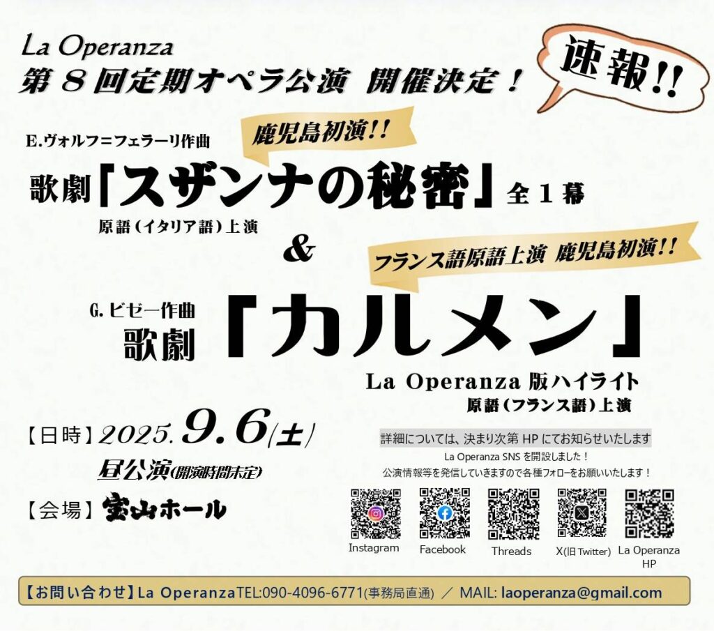 [速報‼]La Operanza第8回定期オペラ公演の開催が決定しました‼